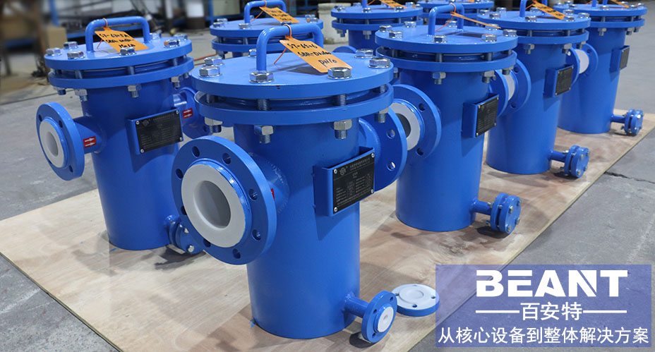 襯氟精密過(guò)濾器襯氟精密過(guò)濾器主要由接管、筒體、濾籃、法蘭、法蘭蓋及緊固件等組成。安裝在管道上能除去腐蝕性流體中的較大固體雜質(zhì),使機(jī)器設(shè)備(包括壓縮機(jī)、泵等)、儀表能正常工作和運(yùn)轉(zhuǎn),達(dá)到穩(wěn)定工藝過(guò)程,保障安全生產(chǎn)的作用。 百安特可根據(jù)不同的介質(zhì)及工況條件選用合適的襯里材料及工藝,為客戶提供全面的過(guò)濾解決方案。